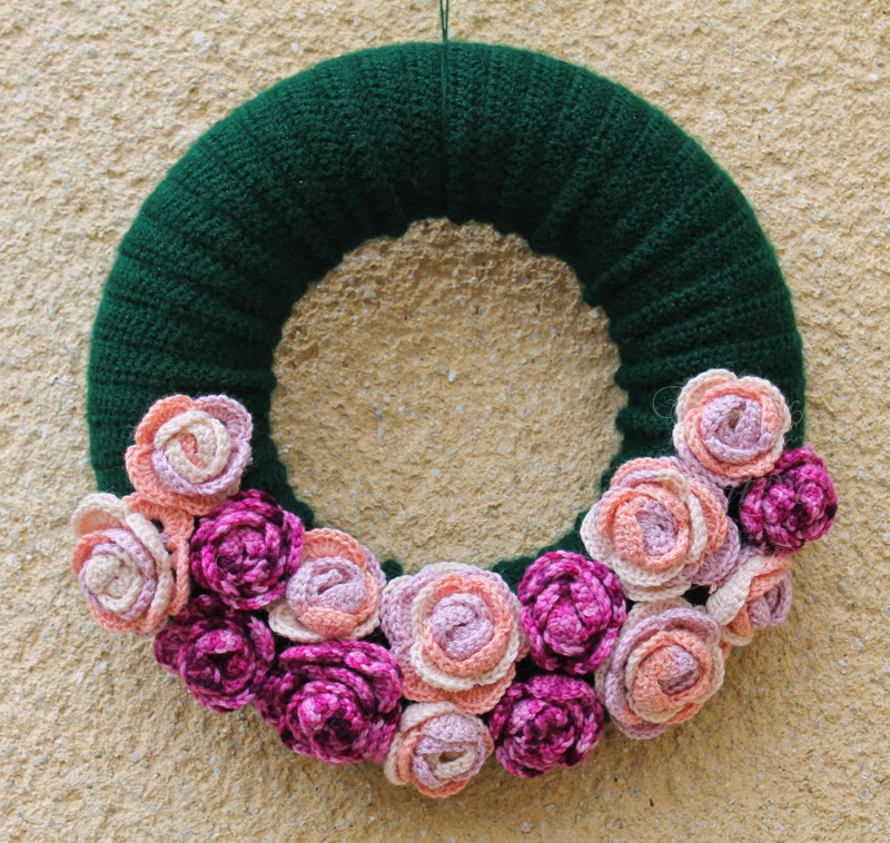 Nach einigen Häkelsessions, die ich immer mal wieder zwischendurch vorm Fernseher eingelegt habe, war dann auch bald mein erster Häkelkranz mit Rosen fertig: