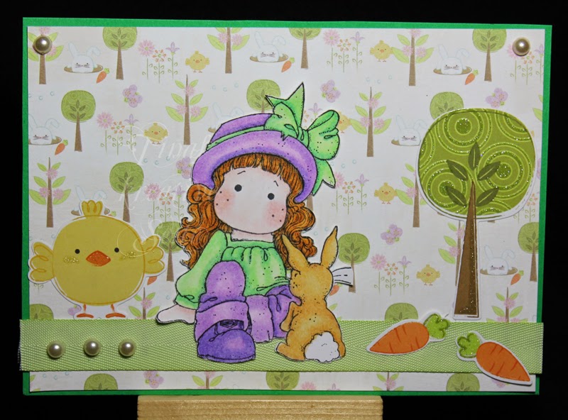 Die Tilda auf der Ostertauschkarte für Patrizia für das Ketting via Stempelmiezen ruht sich noch ein bissal aus, bevor es mit der Eiersuche so richtig los geht! :)