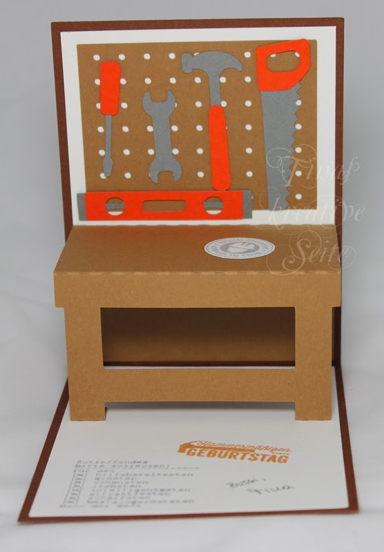 Und innen gibt es eine Popup-Werkbank, die ich mit der Cameo geschnibbelt habe, für meinen Meister-Handwerker: