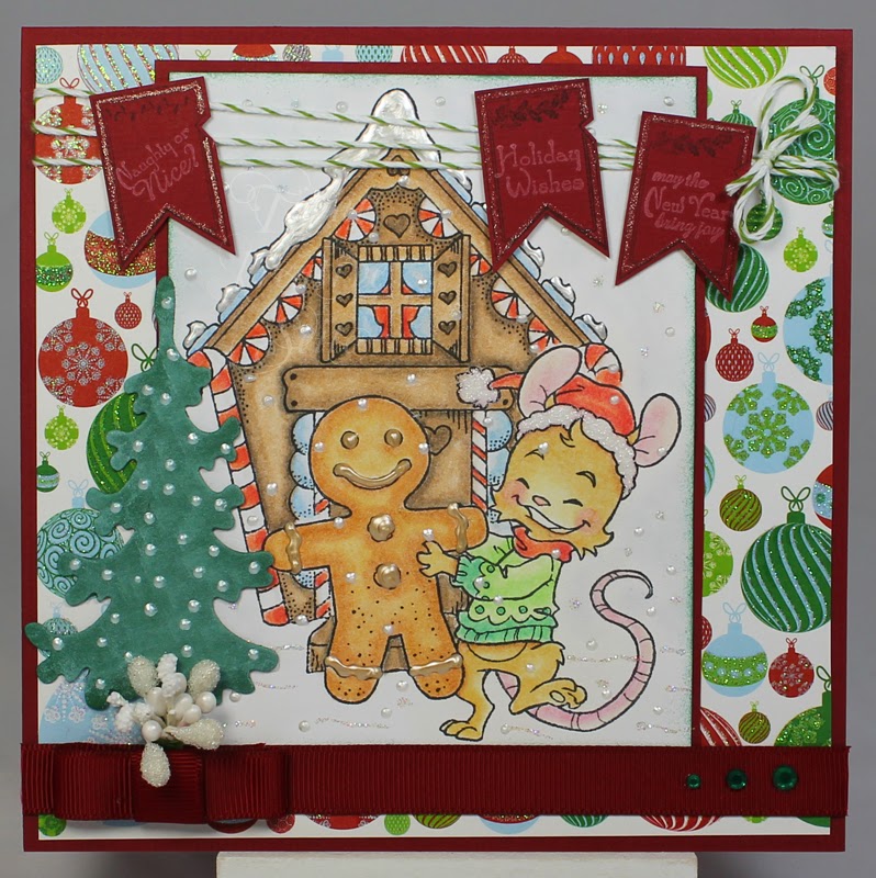 Im Sommer hab ich mich aufgrund der tollen Vogelhäuschen in die Holly Berry House-Motive verguckt und da ist mir doch das süße Lebkuchenhaus auch in den Warenkorb gehüpft. Es passt einfach super zum Henry mit dem Lebkuchenmann, der offensichtlich richtig Spaß hat! :)