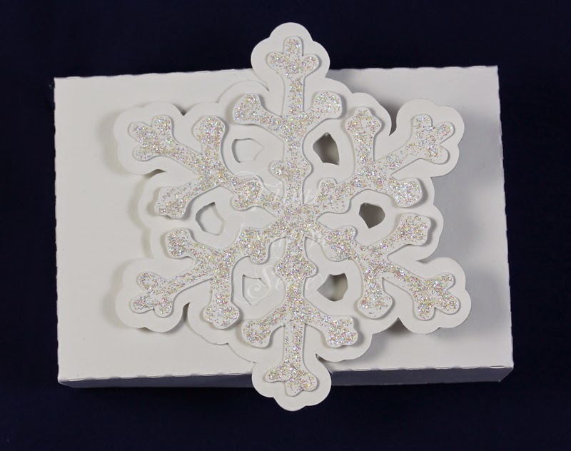 Natürlich mussten die Schneeflocken schön verpackt auf die Reise zur lieben Uta gehen, daher hab ich mit der Cameo nochmal eine  Schneeflockenbox  geschnibbelt, diesmal allerdings ganz in Weiß gehalten, damit sie auch schön zum Thema passt: