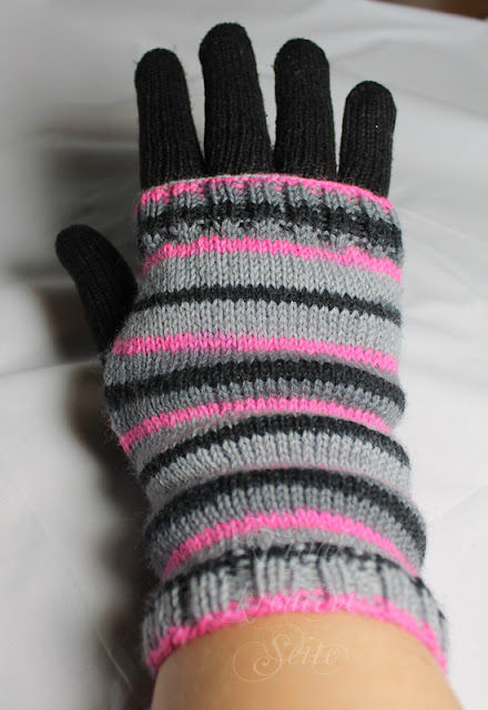 Ich trau mich noch nicht so recht dran, Handschuhe selbst zu stricken, aber so kann ich auch meine alten, abgetragenen Kaufhandschuhe kaschieren und aufpeppen, so dass ich sie noch weitertragen kann, ohne mich schämen zu müssen...