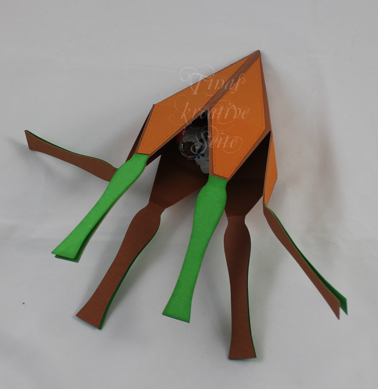 Zugegeben... geöffnet sieht sie nicht sehr ansprechend aus, aber gleich nachdem man das Grüne zusammengenommen und zugebunden hat, bekommt sie eine hübsche Form und wird auch noch recht stabil: