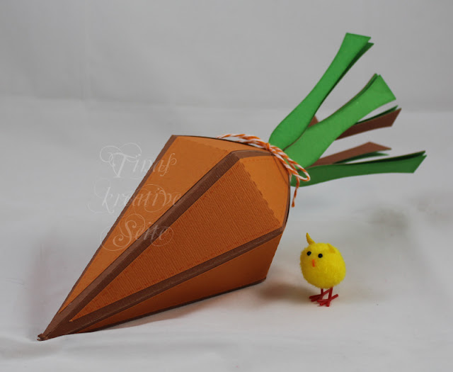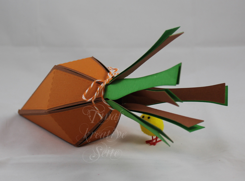 Diese Oster-Karrotte hat sich als richtiges Platzwunder entpuppt... es finden jede Menge Schoko-Ostereier und sogar kleine Schoko-Lämmchen darin Platz.