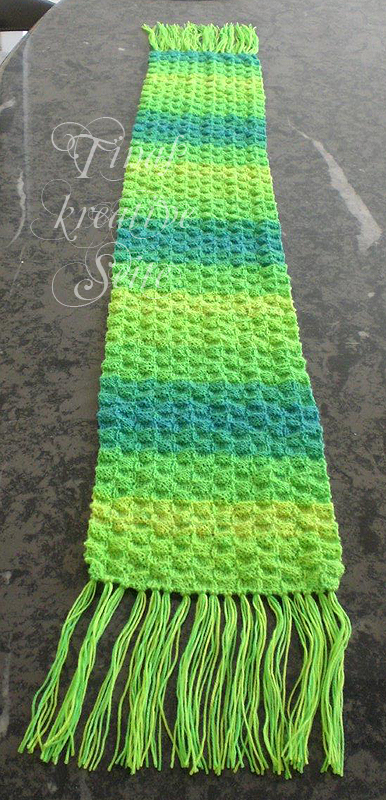 Ich mag den Farbverlauf sehr... ein rein neongrüner Schal wär bestimmt nicht so fetzig gewesen! Der Lieblingsmasseur war auch begeistert - Herz, was willst du mehr! :)