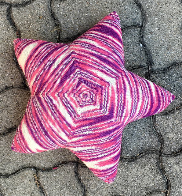 Dieses Sternen-Kissen war übrigens auch einer meiner Wunderwolle-KAL-Beiträge im September 2016. Es macht richtig Spaß, mit den lieben Mädels dort gemeinsam zu stricken und sich auszutauschen! Ich hätte mir nämlich nieeeee gedacht, dass ich mal überhaupt ein paar Socken im Monat zusammenbekomme und jetzt sind es schon mehrere Sachen, auch ganz abseits von Socken.. tja! Sag niemals nie! Gell! :)