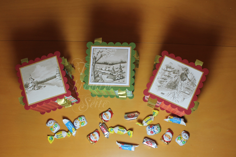 Da ich die normalen (kleinen) Streichholzschachterln verwendet habe, war es gar nicht so leicht, was für die Füllung zu finden. Meistens ist es an der Höhe gescheitert... aber die Naschis, die auf meinen Bildern gezeigt werden, passen super rein.