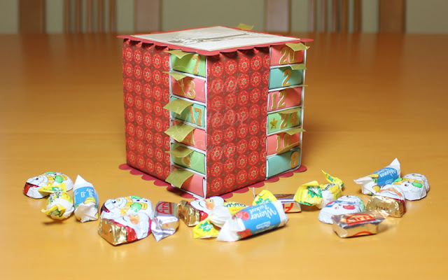 Nicht ganz bedacht habe ich, wie man feststellen bzw. anzeigen könnte bei diesem Kalender, wie viele Türchen denn schon geöffnet sind... tja! Nachher ist man immer gscheiter! Oder auch nicht... habt ihr eine Idee für die nächsten Kalender?