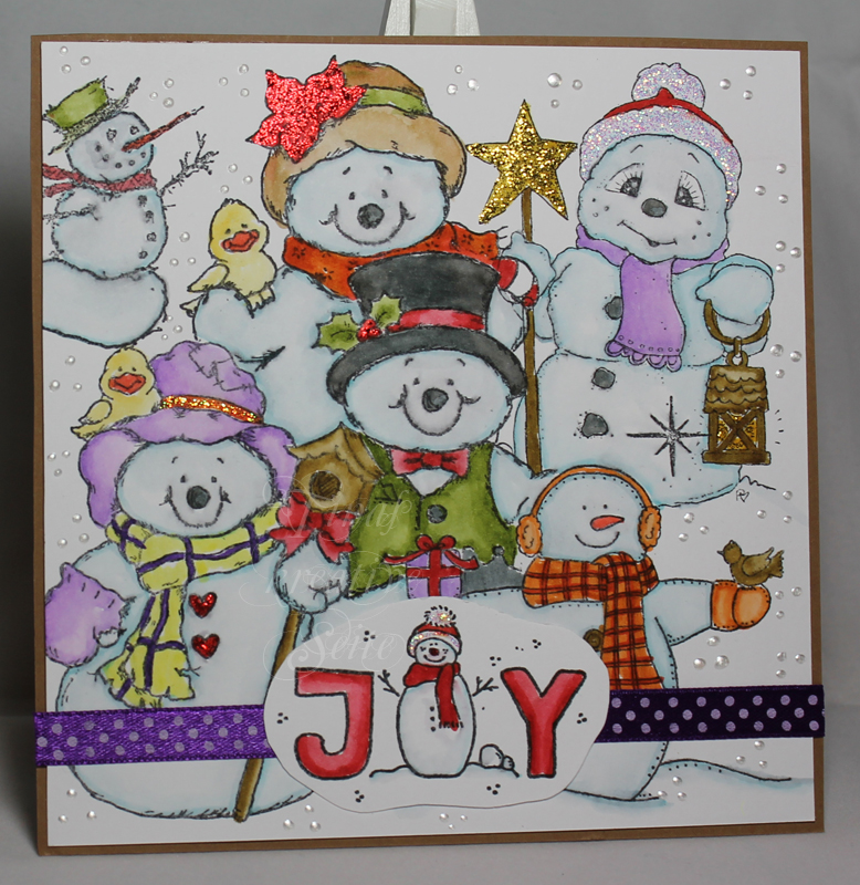 Bei den Stempelmiezen haben wir uns nämlich zwischendurch einer kleinen Challenge gestellt - wer bekommt die meisten gestempelten Schneemänner auf eine Karte: