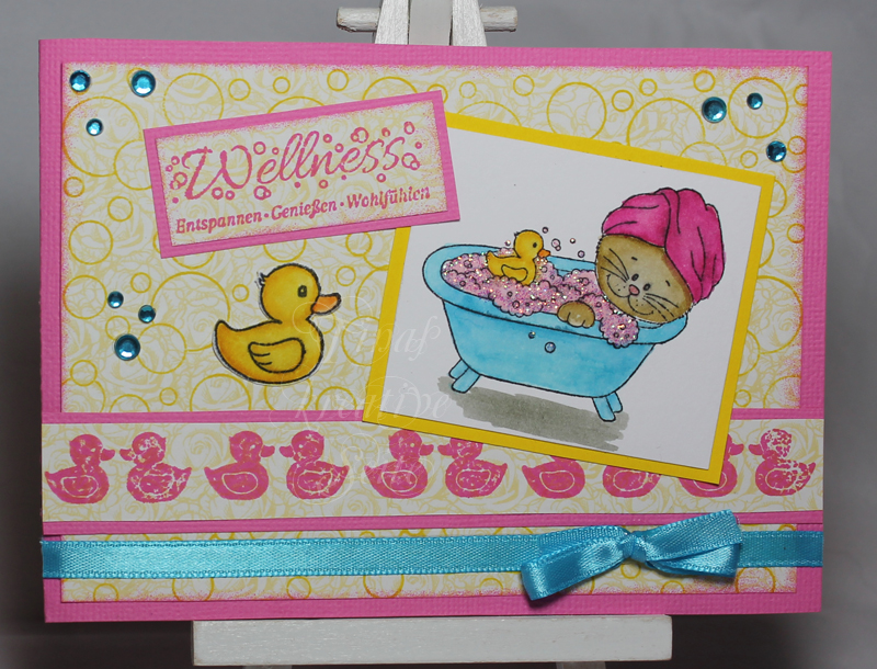 Diese Karte habe ich für ein Ketting via Stempelmiezen zum Thema "Baden/Wellness" für Steffi gewerkelt: