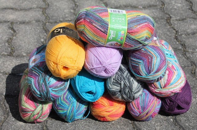 Nach kurzem Überlegen war es klar... mein Opal-Stash ist in den letzten Monaten so gewachsen, da find ich sicher Bobbelchen, die gut zum Projekt passen... und ich finde, die Auswahl kann sich sehen lassen: