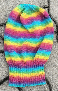 Und jetzt habe ich wieder eines vollständig, das erste Mal alles selbst gestrickt. Ich bin ein bissal stolz. Und Regenbögen gehen ja sowieso immer, gell! :)